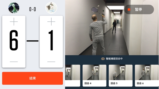 选好拍摄角度,架好手机,点击开始后,当打完一个回合,就可以看到手机将上一个比赛回合截取下来,显示在主视频框下面。每当球员发球后,上一个回合就会被截取下来,同时,比分也会同步更新。目前,ZEPP自动记分的功能还写着“beta”,尚处于测试阶段, 据实测,会存在不准的情况。