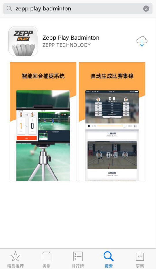 下面我们再来看看ZEPP的软件功能如何,这才是重头戏,毕竟功能都是要依靠手机APP才能实现的。小编使用的是iPhone,所以在APP store搜索ZEPP Play Badminton,下载免费APP。