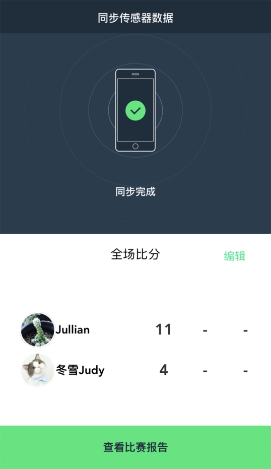 点击结束比赛后,确认比分,就可以开始同步数据了。同步大约用时1分钟,这个速度还是可以的。同步成功后,即可点击查看比赛报告。