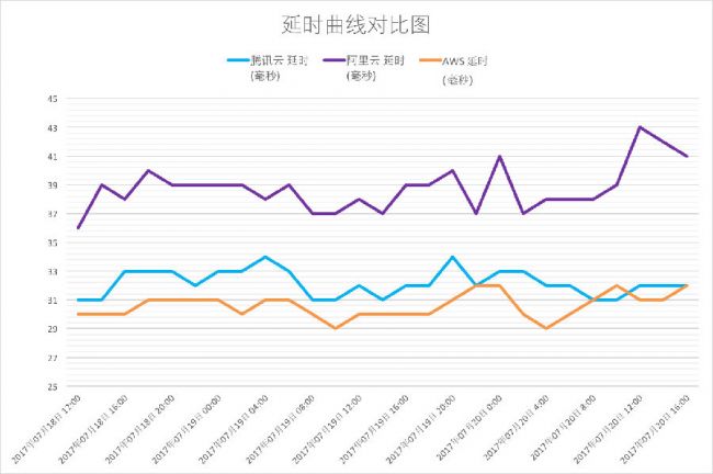 1. 时延:腾讯云、AWS平均时延持平,阿里云次之
