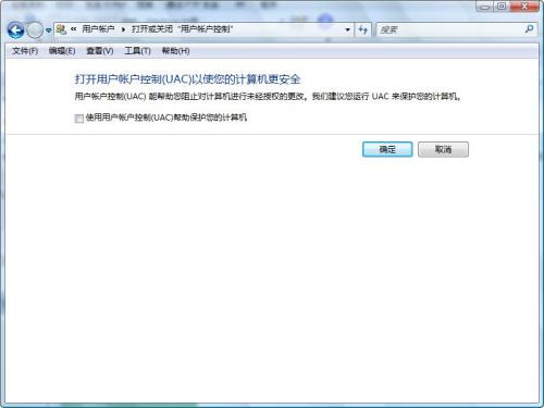 直接在图5所示窗口中取消选择“使用用户账户控制(UAC)帮助保护您的计算机”项,最后单击“确定”按钮并重新启动系统即可。