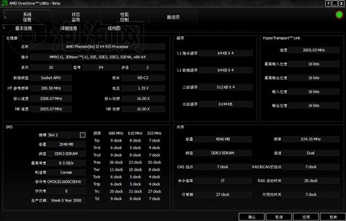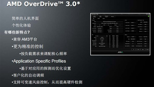 AMD OverDrive 3.0,这个版本比此前的版本在调节方便性以及稳定性方面有很大的改进,不仅如此借助内置的配置文件,自动处理器调整,拓展带宽,有效的提升8%的性能。不少国外发烧极限超频玩家正是通过它实现了Phenom II X4 940处理器的大幅度超频。而我们通过和一些国内极限玩家的交流中,也了解到AMD OverDrive 3.0确实非常出色,对于有超频兴趣的玩家来说,无疑是一个好消息。