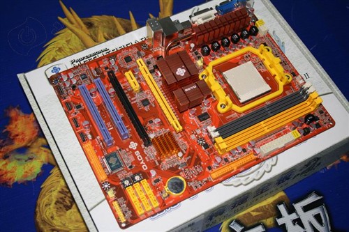 主板采用了AMD 790GX+SB750芯片组,支持AMD最新的AM3接口处理器,支持HT3.0总线,整合的HD3300高性能显示核心且板载了三星128M DDR3显存。在供电方面采用6相供电,能提供对125W处理器的支持,红色全固态电容配合橙色一体化热管相得益彰。同时,提供了DDR2和DDR3双通道内存支持,最高支持DDR2 1066/DDR3 1333规格,最大支持内存容量为4GB。