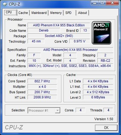 Phenom II X4 810采用45nm工艺制程,作为AM3四核的首款上市型号,810实际上是一款入门级四核产品,相比老款AM2+版Phenom II X4 920/940,它将L3 Cache容量从6MB降为4MB,功耗也随之从125W降至95W。其他规格方面,Phenom II X4 810主频为2.6GHz,外频为200MHz,倍频为13x,二级缓存4x512KB,HT总线频率4GHz。