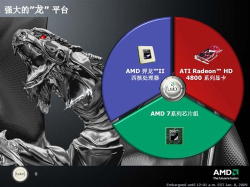 与其说蜘蛛平台翻开了AMD平台化战略的第一页,那么Dragon平台将会是强强联合,搭配HD4000系列显卡的平台如虎添翼,其中以HD4850为首的产品深受市场上八成用户的赞赏,对比之前的HD3850与HD3870简直是天上地下,外加上行的45nm Phenom II处理器相信此次Dragon平台会有一番作为。