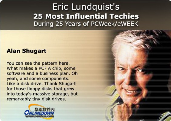 艾伦·舒加特(Alan Shugart),软盘标准的主导者,计算机磁盘存储器行业的前辈,最先就职于IBM,后来创办了希捷seagate公司。他倡导的存储方式影响一直持续到今天。