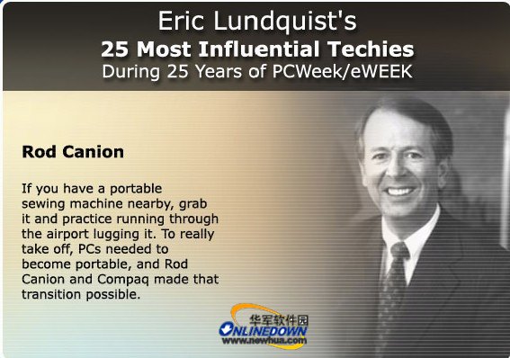 与同伴共同创造了康柏电脑公司。1983年3月,售价为3590美元的康柏便携式电脑应该算是当今笔记本电脑的始祖了。罗德的贡献在于让电脑变得更人性化、易用,普通人也可以拥有合适自己的电脑设备。