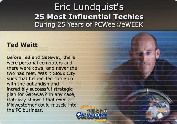 与硅谷IT精英创业经历所不同的是, 泰德·威特(Ted Waitt)是在农场办起的计算机公司。公司的商标虽然是一头黑白花牛,但并不影响其销售业绩。Gateway步Dell后尘,也搞直销,在Ted身上散发的乡村田园气息使其在业内格外与众不同。