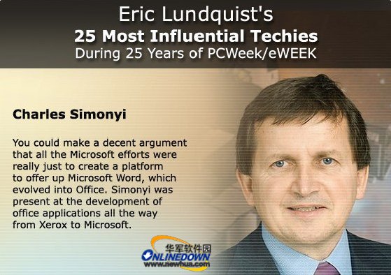“所见即所得的”倡导者,微软赖以独霸天下的Windows系统的核心,查尔斯·西蒙尼还一手建立了微软的程序员管理体系,他在微软公司的头衔是首席工程师。