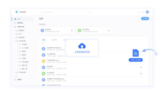 修改后的最终文档,将实时保存至共享空间——飞书云空间。空间内,不仅使用者可灵活设置权限,还可将文档标记为“收藏”和“已删除”的文档,当删除文档时,回收站内将留存已删除的文档,一定时间段后才会清空,这十分有利于使用者找回误删的重要文档,随时随地安全存储。此外,空间支持多格式文件高速上传、下载和预览, 具有高级搜索、快速查看等功能,文件查找更便捷。