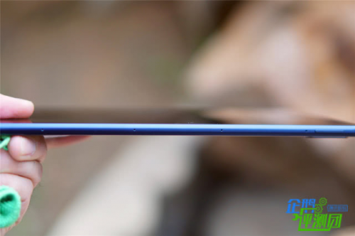 电源开关位于平板左侧靠上位置,顶部靠左位置设置了音量按键,一体式按键感觉略短了一些,不过适应一段时间后就可以轻松使用了。