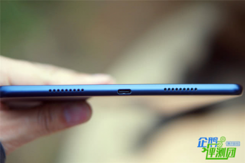 USB Type-C 接口位于平板的右侧中间位置,支持快速充电。依然没有保留3.5mm耳机接口,但是随机附赠了一个Type-C转3.5mm转接头,方便使用传统耳机的用户使用。