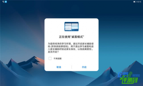 作为一款主要面向教育领域的平板电脑,除了使用的硬件配备,软件更为重要,除了EMUI 10.1系统,华为为MatePad定制了更加实用的教育功能。比如刚一开机就会提示是否使用“桌面模式”,设置密码进入该模式后,平板电脑在使用教育中心和儿童乐园功能时可以定制平板电脑的使用时间,对应用程序进行限制管理。