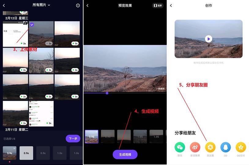 第三步,点击生成卡点视频,分享至微信、微博、朋友圈;