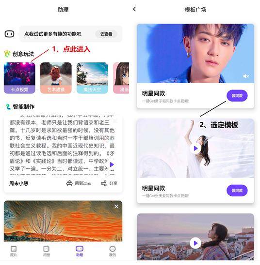 第一步,进入“模板广场”,选定心仪的模板,点击制作同款;