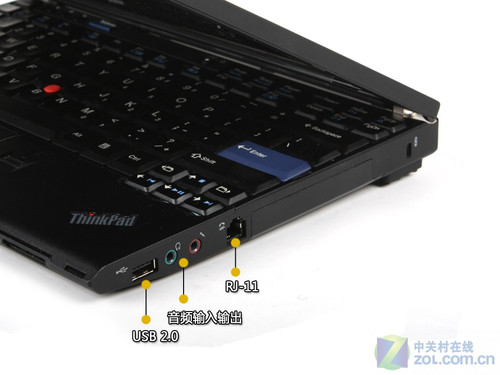 在机身左侧,这款机器配置了一个USB接口一对音频接口和一个Modem接口。由于机身过于轻薄,所以这款机器依然没有配置光驱。
