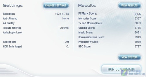 下面我们采用了PCMark Vantage对这款机器进行了整体性能测试,虽然联想ThinkPad X201采用了集成显卡,但是强悍的处理器性能和大容量内存使这款机器的整体得分非常高,6866分的成绩在同级别笔记本中很少能够找到对手。
