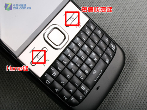 左侧为Home菜单键、右侧为短信快捷键,方便查看收发短信,管理存储信息,而中间则为传统的四向导航键,对于一般用户来说上手很容易。