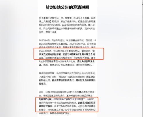 协议未完成双方实际签署,与B站从法律上并未建立合同关系;