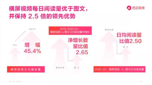 平台大力扶持的背后,视频体裁越来越受到消费者和创作者的欢迎。据西瓜视频日前发布的《图文作者跨体裁趋势报告》(下称报告)显示,从 2019 年到今年第一季度,横屏视频日均用户停留时长已经是图文内容的3. 67 倍,日均阅读量则是2. 5 倍。而在创作者方面,从去年至今,横屏视频创作者周均新增人数也达到了图文创作者的1. 95 倍。