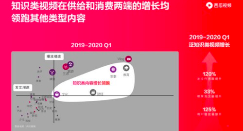 相比短视频而言,长视频可提供更多的信息增量,满足网民群体对知识科普类内容的需求。《报告》数据显示,今年第一季度,包括文化、财经、军事、教育等在内的知识类视频增长迅猛,在供给和消费两端的数据表现均领跑其他类型内容。