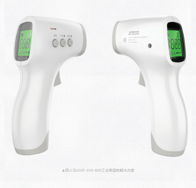 由于加入了带有透镜的套筒,工业测温枪感受到的IR信号相比医疗测温枪会低很多,由此转化成的电信号也会减弱,对测量精度造成影响。因此西人马技术人员调整了传感器的IR响应特性,同时在应用端通过软件算法大幅度提升了测量范围,又保证了测量精度。