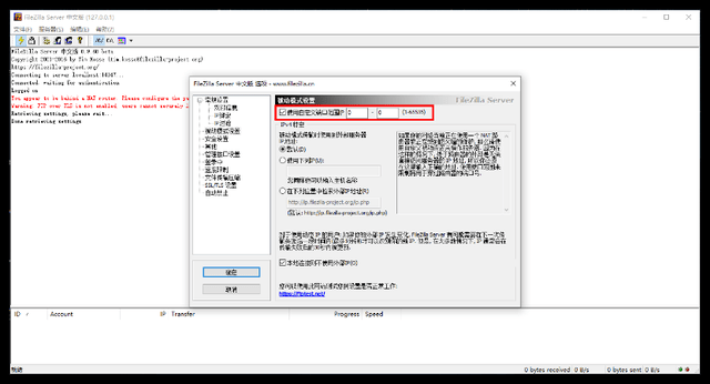 再次打开FileZillaServer,选择“编辑”-“设置”-“被动模式设置”,勾选“使用自定义端口”并将端口修改为花生壳生成的外网端口28384,点击确定即可;到这里服务器端即全部配置完成。