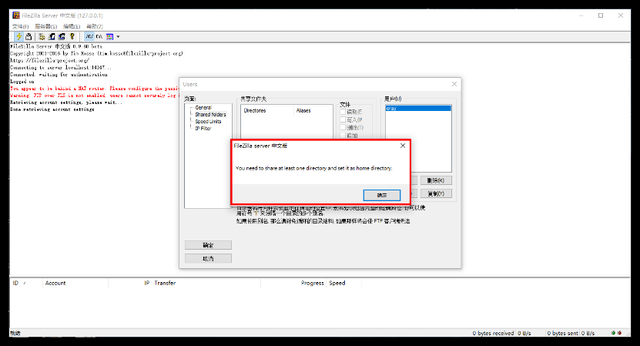 设置完共享文件后,点击确定,局域网FTP服务器及共享文件配置完成。