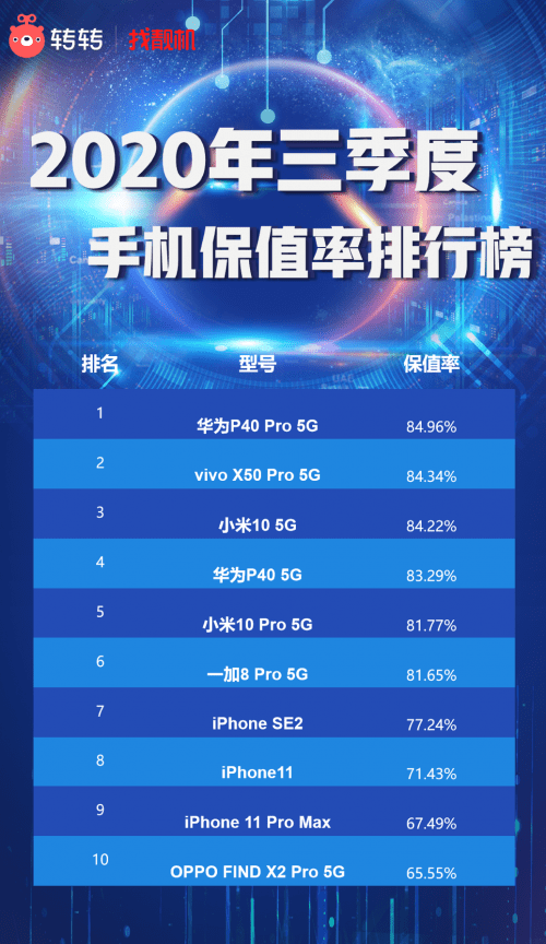 根据转转集团Q3数据可知,华为、小米等高端机型中,已有不少款超越iPhone 11系列的保值率。例如,华为P40 Pro、vivo X50 Pro、小米10等机型的保值率均为84%,而iPhone11系列的保值率则最高为71%。