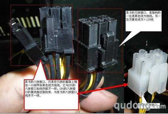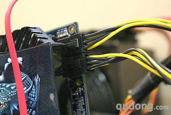双6PIN接口是最近提出的电源接口。与为主板供电提供的双4PIN接口一样,双6PIN接口提供了多路+12V电流输入。除了一些新电源之外,许多电源至多提供一组6PIN接口,我们依然可以采用转换的方式,利用数据线连接。笔者使用的这台劲翔500静音版电源,提供了2组8PIN和2组6PIN显卡供电接口,因此遇到HD5830这样需要双6PIN供电的也不用担心不够用。