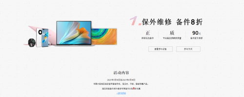 华为服务感恩回馈季来袭,大陆地区保外维修备件8折!