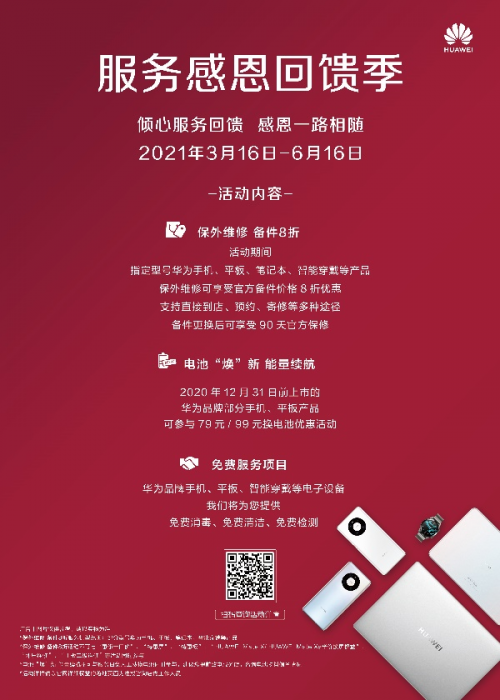 点击下方链接了解详情:https://consumer.huawei.com/cn/support/service-thanks-giving-season/