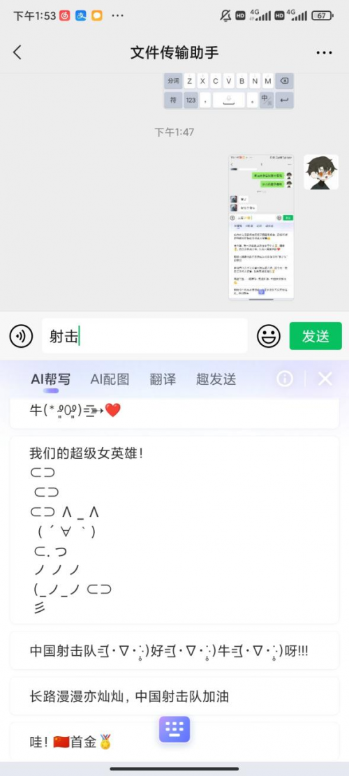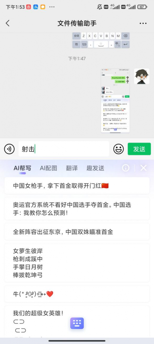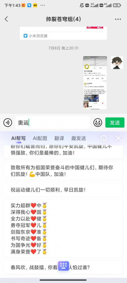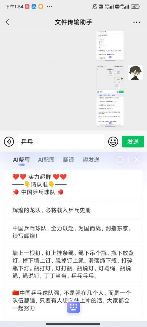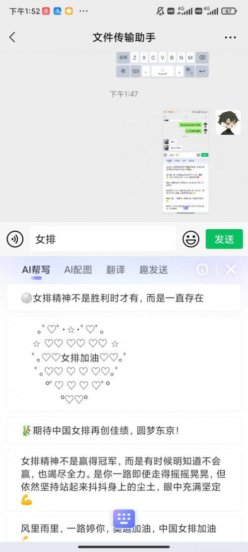 输入“女排”、“射击”“乒乓”等运动项目词,智能汪仔3.0就能自动匹配女排和射击关联的加油语录。