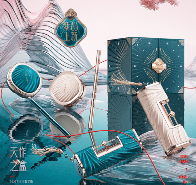 雅诗兰黛SHUSHU/TONG联名彩妆礼盒(左)、花西子天作之盒国风礼盒(右)