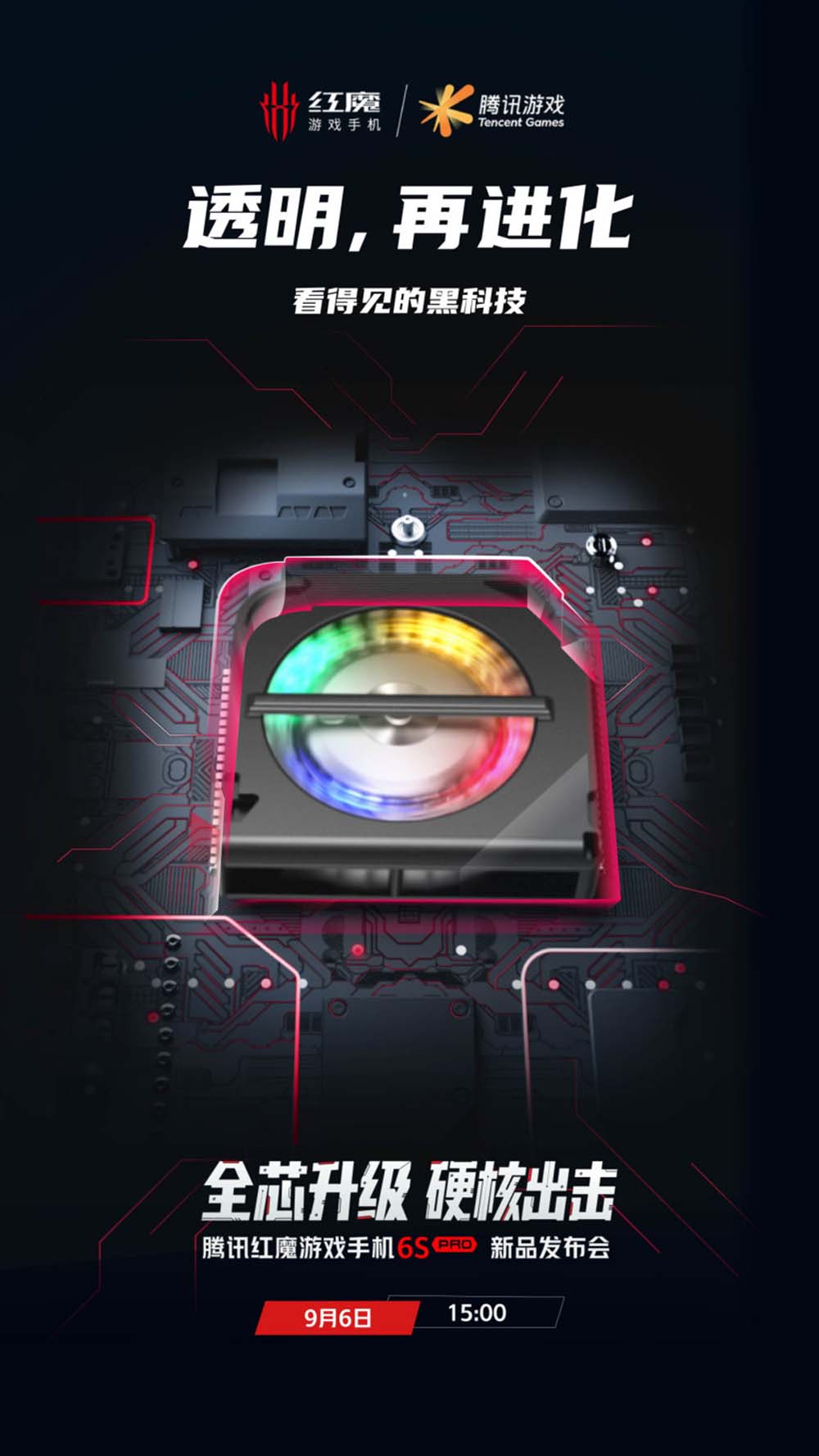 红魔游戏手机6S Pro在目前唯一一款官宣在9月发布的新机,将于9月6日推出,目前官方已经在马不停蹄的预热了。新品或许会延续红魔游戏手机 6 Pro 氘锋透明板的外观,后盖将采用透明玻璃材质,后置三摄,具体参数未知。