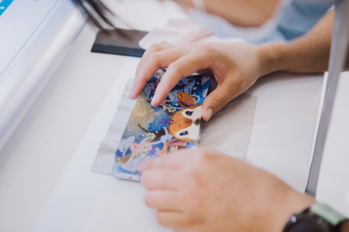 HONOR Talents艺术背膜来源于HONOR Talents荣耀全球设计大赛的获奖作品。在荣耀Magic 3以及荣耀50的系列活动中,洛克切膜机(rock space)都在现场为荣耀用户提供各类艺术背膜、晶彩背膜的量机裁切。工作人员使用洛克切膜机为用户贴试不同花样的手机膜,其机器精准的切膜工艺,造就妙不可言的贴膜体验,从选择型号,到装膜、切膜,再到最后的贴膜,就像穿衣服一样简单。
