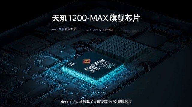 OPPO Reno7 Pro重磅发布,搭载基于天玑5G开放架构的天玑1200-MAX。