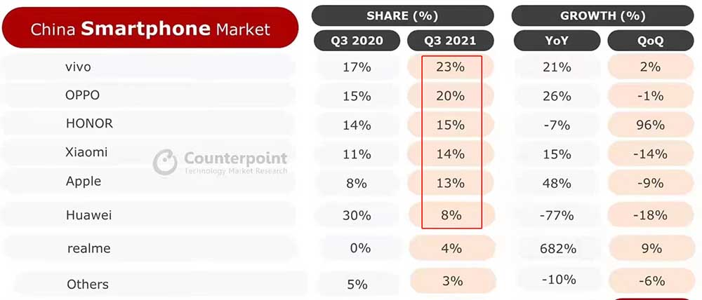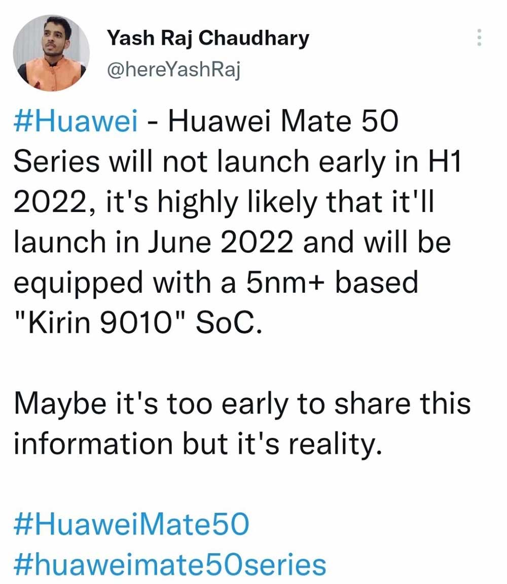 2021年华为手机份额下滑巨大,根据Counterpoint机构数据显示,2020第三季度华为份额达到了30%,而到了2021年则下降到了8%,其中很大一部分原因就是麒麟芯片和5G遭到了限制,不过华为一再强调并没有放弃手机市场,新品依旧在继续出,先后发布了华为P50系列、华为nova9系列,近期有传闻华为Mate 50系列将于7月发布。而不仅手机市场华为没有放弃,华为麒麟芯片似乎也要有动作了,前几日,华为麒麟官方在元旦致辞中写道“2022年,继续出发,向‘芯’而行!”。