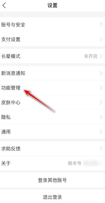 在设置菜单栏中点击进入功能管理。