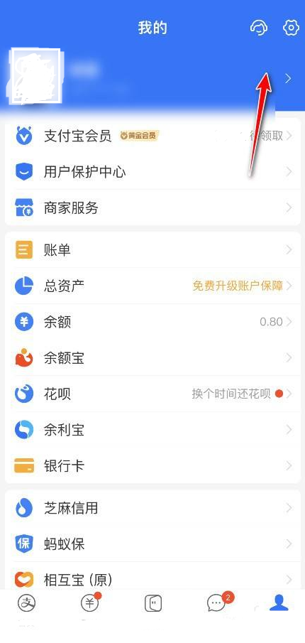 首先在支付宝我的界面,点击右上角的设置按钮。