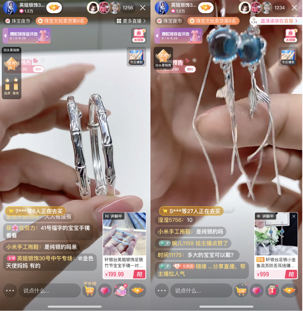 而在直播方面,英姐尝试过搭建直播矩阵或进行跨类目直播,但“广撒网”的模式也意味着定位不够“精专”。“我发现我的方向走错了,没有坚守住做产品的初心,好在我们很快就扳正了发展路线,还是以银饰产品为主。”