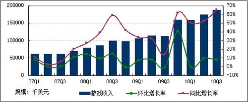 近日,网易公布了2010年Q3财报,根据财报显示,网易旗下游戏业务营收为1.88亿美元(13亿元人民币),同比增长65.3%,环比增长7.8%。在网游整体市场增长放缓,用户数量规模增长减慢的环境下,网易游戏表现出令人称羡的强劲势头。