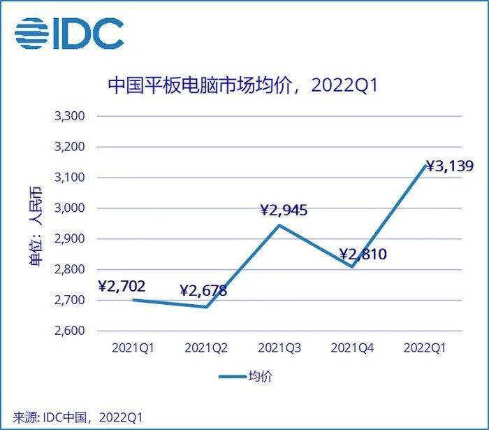 中国平板市场“两极分化”加速。IDC统计数据显示,2021年中国一线城市平板电脑保有率已接近80%,但全国家庭平板保有率仅为19%,同时中国市场平板销售均价快速提升,从2021年一季度的2702元提升至今年一季度的3139元。这意味着中国平板普及入门市场未来仍有较强的增长空间,同时高端用户的换机需求更加旺盛。