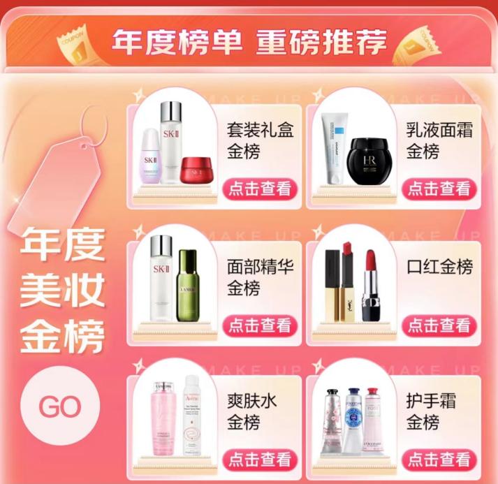 除了丰富多元的置妆选择,京东新百货美妆护肤专场还设置了年度美妆金榜专区,榜单聚焦套装礼盒、乳液面霜、面部精华、口红等热门美妆品类,以多维度榜单打造专业、实用的美妆选购指南。此外,京东新百货12.12还设置了大牌美妆、潮流国货、低价好货等多个分会场,全面升级高效、省心的美妆消费体验。