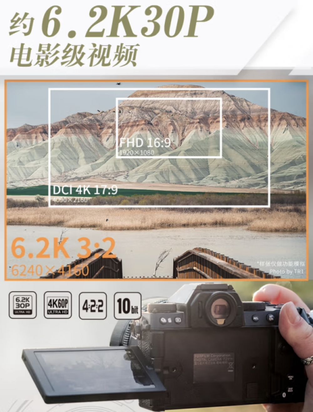在视频拍摄方面,富士X-S20支持使用内置存储卡拍摄6.2K/30P 4:2:2 10-bit视频,另外也支持4K/60P和1080/240P等众多视频规格,并设有一个用于连接外部配件的3.5mm麦克风/耳机插孔,可应对多种视频录制需求。本次富士X-20还全新增加了Vlog模式,当启用产品优先模式后,当拍摄对象出现在画面中时,焦点会自动从你的面部转移至拍摄对象上来。当启动背景虚化模式后,背景会自动虚化,无需再手动调节光圈,非常方便快捷。