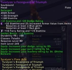 同时防御的头部附魔和肩膀附魔中的防御等级变成相应的躲闪等级(头和肩膀都是20点躲闪等级)。