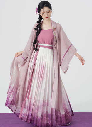 其中,以宋制汉服为基础的改良日常汉服、马面裙等品类最受消费者欢迎,在京东持续热销中。如京东品质汉服上新季带来的织造司苏扶原创三件套、粉雕玉琢原创三件套等宋制汉服新品,融入改良式宋抹和主腰、飘带等元素,更显清丽优雅;织造司花涧原创明制汉服两件套,马面裙和立领短袖的组合,无论是配套穿着,还是分别搭配现代服饰,都能充分展现端庄大气的同时,也能百搭时尚。