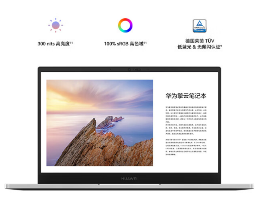 新品价格直降带来实在优惠,配置也同样实在硬核。华为擎云S520屏幕方面采用了14英寸FHD防眩光屏,兼具高亮度和高色域等优点,带来更加绚丽的色彩以及更丰富的细节。屏幕支持DC调光,还获得了德国莱茵TÜV低蓝光和无频闪认证,既保证清晰的画面还能给予眼睛更好的呵护。华为擎云S520还支持电子书模式、类纸张等显示效果,带来亲切友好的阅读体验。