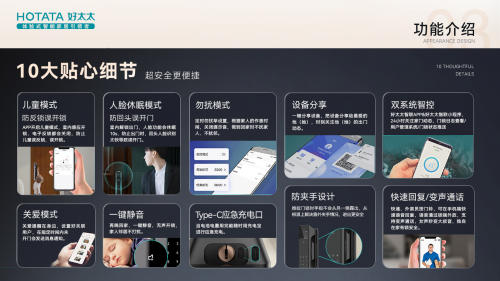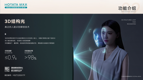 好太太在智能晾晒行业中处于领先地位,其旗下的智能锁也在不断进行科技创新,比如推出的这款好太太全能旗舰智能锁V81ZMax,它采用了先进的3D结构光人脸识别技术,能实现1秒内无感解锁。这项技术通过采集和计算,得出人脸的三维深度信息,经过对比,从而实现解锁。即便在光线昏暗的环境下,也能准确识别五官,而使用照片和视频均无法破解。这种3D结构光人脸识别技术极大地提高了智能锁的安全性和实用性,为用户提供了更先进、更可靠的家居安全解决方案。