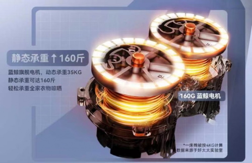 好太太超薄光盒晾衣机D-3210除了令人印象深刻的阳台灯般的照明功能外,其电机性能也十分出色。它采用了好太太自主研发的蓝鲸2.0动力系统,运用了HMR高磁驱动、SAC环绕起重和斜齿结构等技术。这些先进技术的强大作用使得它的静态承重能力达到了惊人的160斤,即便是一家五口同时晾晒衣物,也能轻松应对。其独特的斜齿结构保证了运行过程的静音性,噪音产生的分贝不会超过50,即使在夜间使用,也不会打扰到入睡的家人。